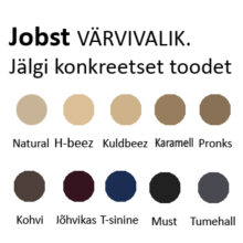 | Värv | Helepruun, Jõhvikapunane, Karamell, Kohvipruun, Kuldne beeź, Must, Naturaalne, Pronks, Tumehall, Tumesinine |
